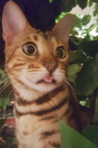 "Meanie" in the original 11' tall Fantasy Forest cat tree.
